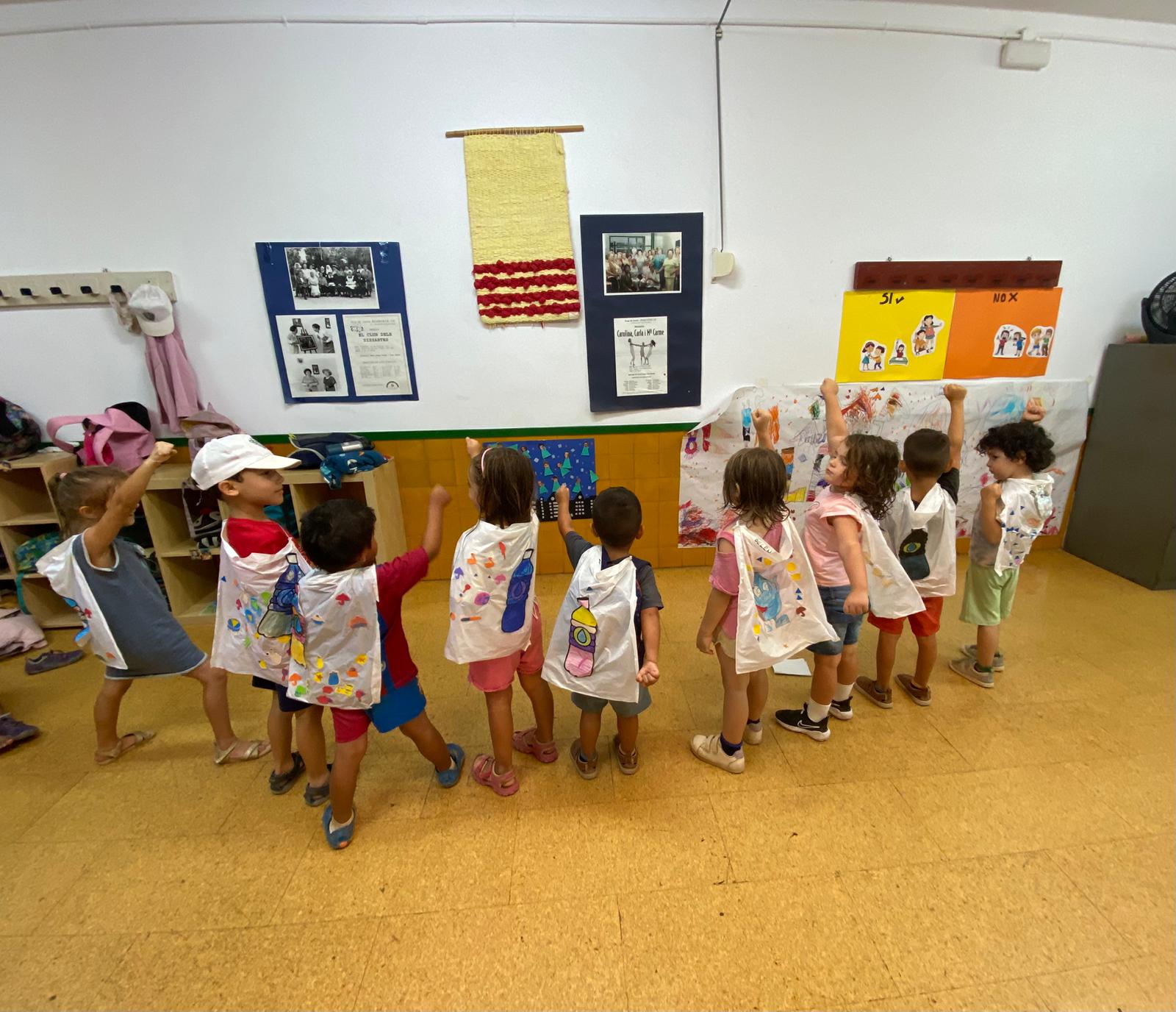 Per ajudar a Aiguachof, hem dissenyat la nostra pròpia capa d’aigua personalitzada, amb molt de color i imaginació! Cada capa era única! 🎨🦸♀