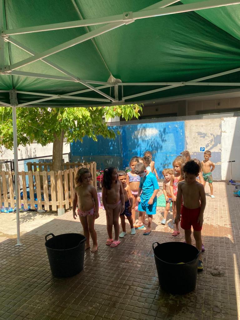 Ens hem xopat de cap a peus amb un joc d’aigua ple d’esponges, gots i globus! Tots hem acabat ben mullats i súper contents! 💧🎈