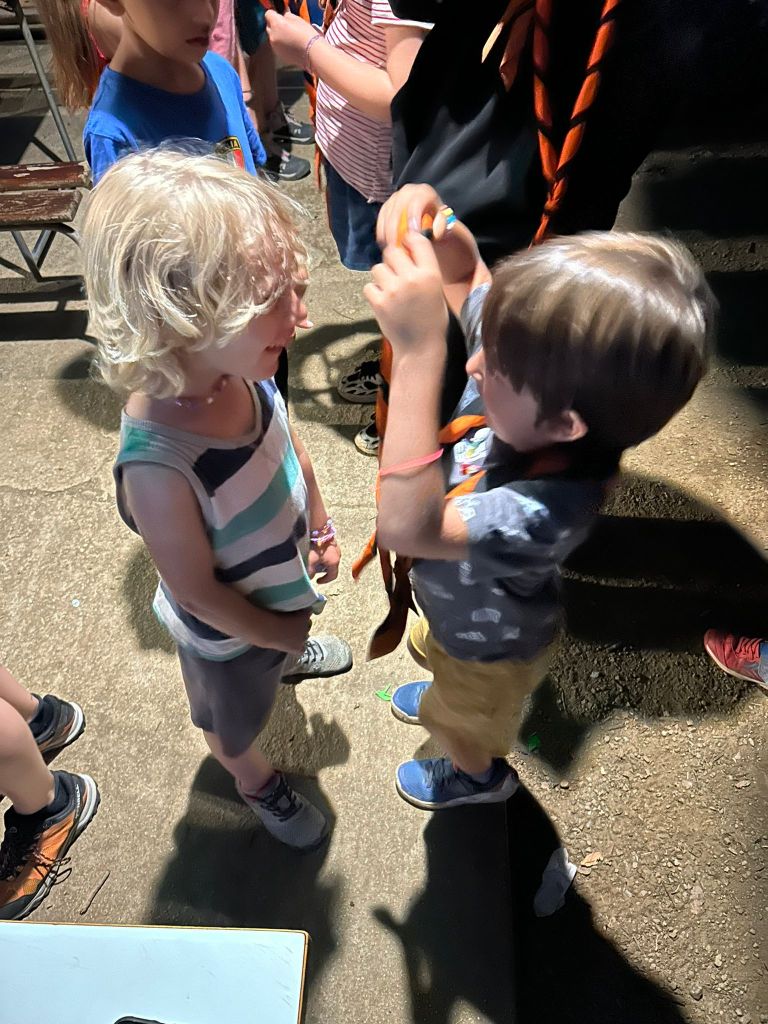 així esteu ajudant a una cavallera ,quina sort ha tingut d trobar-vos ara q sou d colònies !!